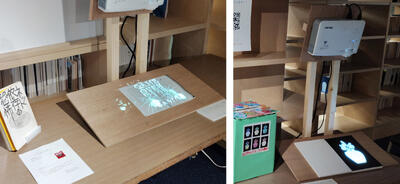 参加学生が書籍を一冊選び、そのページに相応しい映像コンテンツを考え、本や読書をアピールするような設置型の作品「ブック・プロジェクション」ができあがりました。映像を鑑賞いただき、対象の書籍をお手にとってご覧いただければ幸いです。